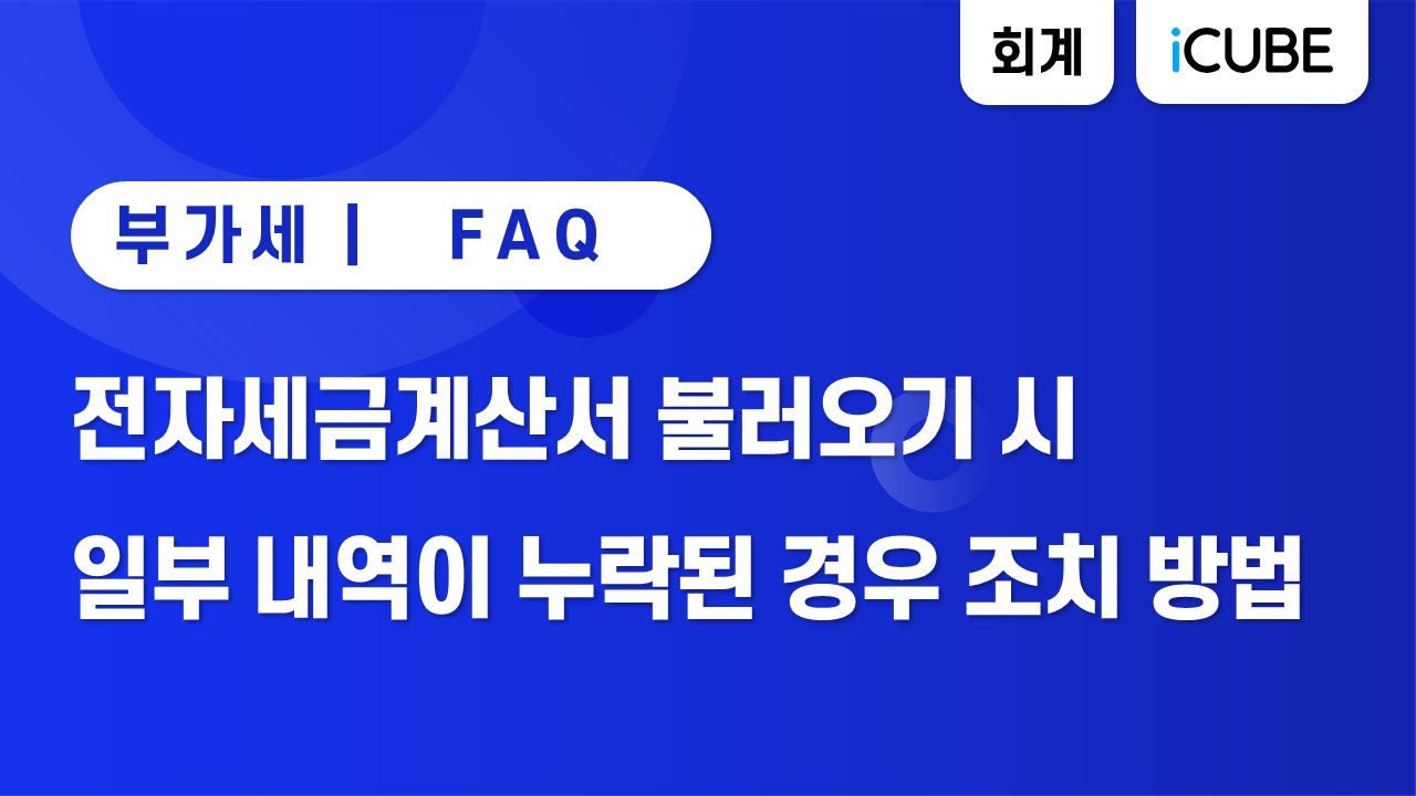 #전자세금계산서검증및전표처리 #불러오기 #일부내역누락 #iCUBE #아이큐브